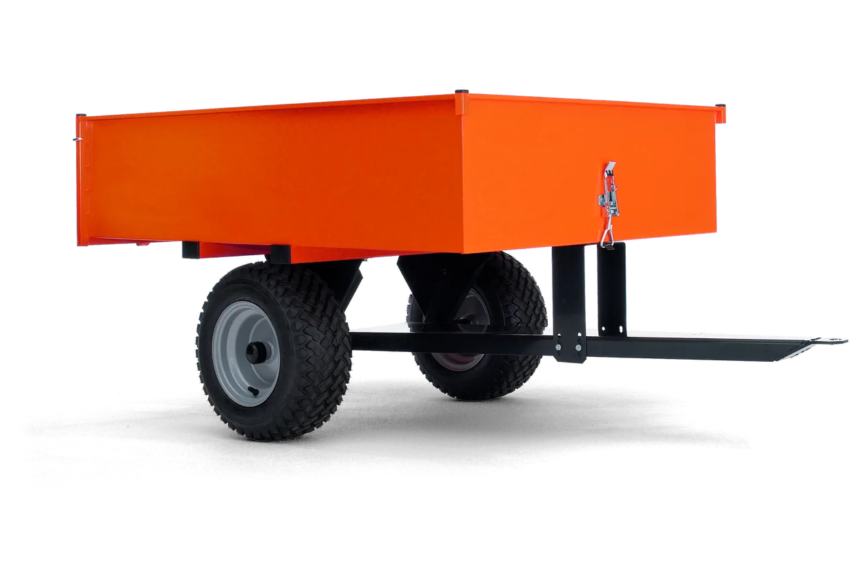 Rummelig trailer lavet af robust stål. Kan tippes med foldbar bagklap for nem på- og aflæsning.